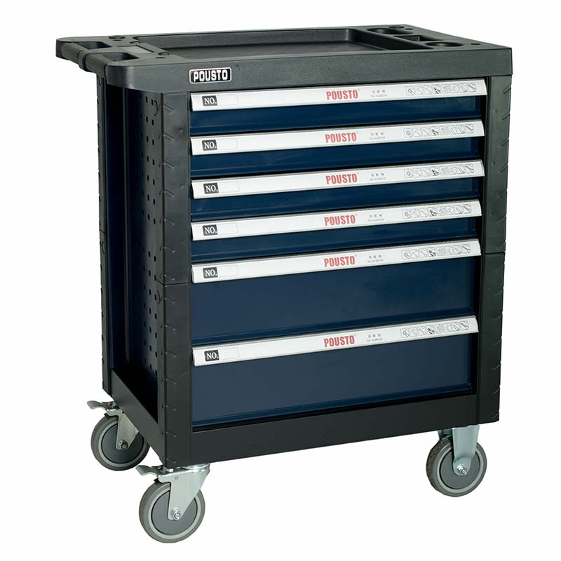 1.抽屜采用滾珠導軌,抽屜承重力為50kg/層,六層抽屜不同高度能儲存不同種類的工具,中央側鎖設計,開啟方便,每個抽屜都配有防傾倒保護鎖。
