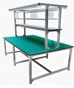 鋁合金工作臺人性化設計,符合人體工程學原理,提高生產效率模塊化設計,多種附件可視需要任意組合,且具有互換性;標準化設計,防靜電工作臺、鋁合金工作臺可根據不同要求,定制您所需產品;高品質臺面,具有防靜電/防火/耐磨等性能;鋁合金工作臺高低可調節,適合您的使用需求;支撐采用鋼結構設計,堅固耐用,可均勻承載500kg;整體防靜電,從根本上杜絕潛在靜電對產品的威脅。