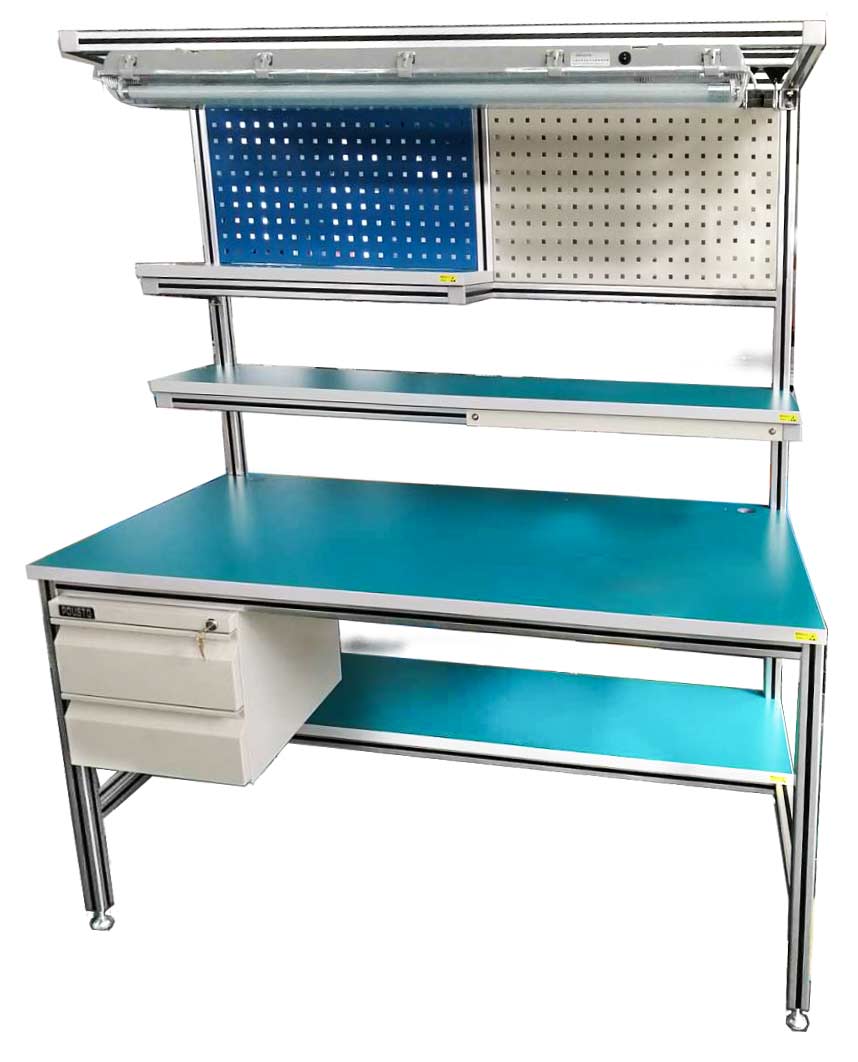 鋁合金工作臺人性化設(shè)計,符合人體工程學(xué)原理,提高生產(chǎn)效率模塊化設(shè)計,多種附件可視需要任意組合,且具有互換性;標(biāo)準(zhǔn)化設(shè)計,防靜電工作臺、鋁合金工作臺可根據(jù)不同要求,定制您所需產(chǎn)品;高品質(zhì)臺面,具有防靜電/防火/耐磨等性能;鋁合金工作臺高低可調(diào)節(jié),適合您的使用需求;支撐采用鋼結(jié)構(gòu)設(shè)計,堅固耐用,可均勻承載500kg;整體防靜電,從根本上杜絕潛在靜電對產(chǎn)品的威脅。