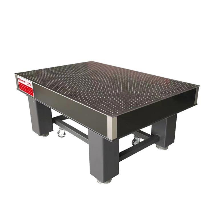 • ?臺板采用蜂窩芯夾板結構,具有重量輕、高剛度、高阻尼等優點,上面板為1cr17優質高導磁不銹鋼,經精密研磨處理,表面平面度高。回旋打磨工藝清除毛邊,達到無反射、亞光效果,面板具有M6螺孔,易于固定光學元件