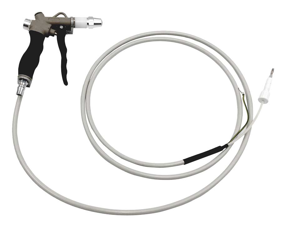 離子風槍采用交流高壓電,連接至專用發射電極,使空氣電離,產生正、負離子,并由壓縮空氣輸送至被消除靜電物體表面,與正、負靜電電荷中和,達到高效、可靠消電的目的。是為目標物體表面提供靜電防護而設計的快速、高效的除電吹塵裝置。