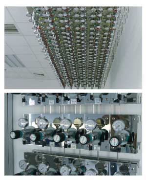 在現代化的實驗室中,為了完成實驗,需要用到多種分析儀器, 如氣相色譜儀,原子吸收,氣一質聯用儀,ICP等等,其中這些 儀器需要用到高純氣體,傳統的做法是采用獨立鋼瓶分散供氣 的模式,這種供氣模式每臺儀器設備單獨配置氣體鋼瓶,分別 滿足每臺儀器設備的使用,但隨著近年來實驗室投資的不斷加 大,儀器設備的迅速增加,用氣量也逐年增加,傳統的供氣模式 已經難以滿足儀器設備增加的需求,同時分散供氣模式帶來的 實驗室布局混亂,鋼瓶的頻繁更換也對實驗室的管理和維護造 成了困難,為了解決以上兩個方面的問題,就需要一套安全性 高且能實現集中分配供氣的系統完成從氣源向儀器的供氣這 就是實驗室高純氣體管道系統的功能所在。